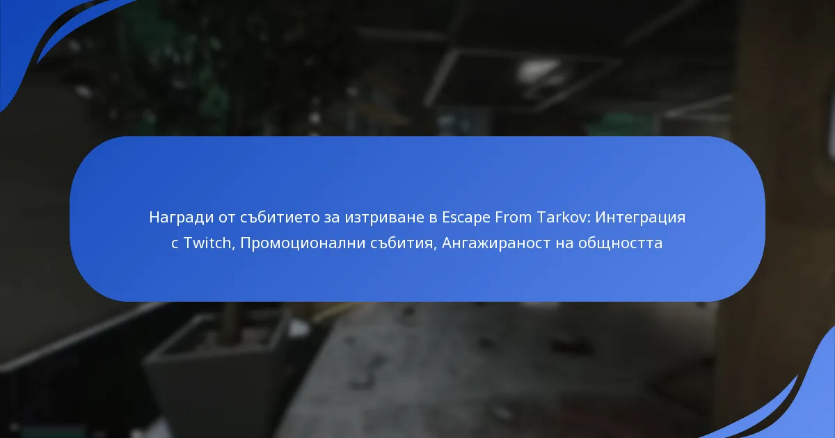 Твич дроповете в Escape from Tarkov предоставят на играчите уникални награди в играта за гледане на определени Твич стриймове, увеличавайки ангажираността с играта. За да получите тези дропове, просто гледайте стриймовете, докато сте влезли в своя Твич акаунт, и наградите ще бъдат автоматично добавени към вашия игрови акаунт. Освен това, събитията за изтриване предлагат на играчите ексклузивни предмети и бонуси, които допълнително обогатяват игровото изживяване по време на тези специални периоди.